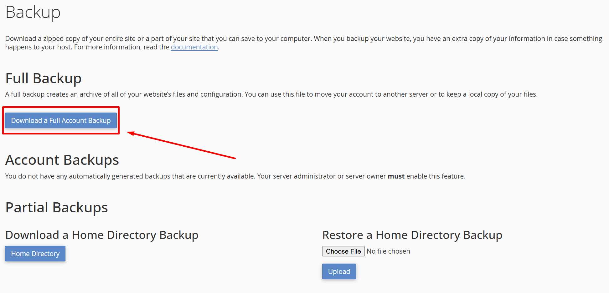 5. Click on "Download a Full Account Backup